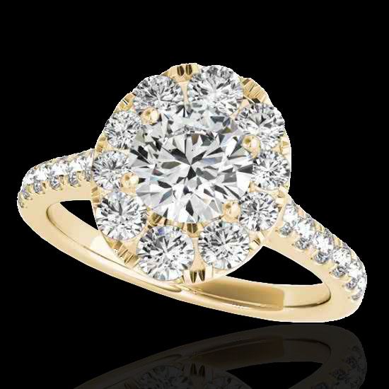 2 CTW H-SI/I Certified Diamond Solitaire Halo Ring 10K Yellow Gold ---- Luxury Designer Brand Ring Appraised Retail Price at $11,600 ---- SKU Number US34080 10k Yellow gold Ring Size is 7, Ring measuring approx. Uniform, weighing in total approx. 4.7 grams. Made in the USA and is stamped 10k, Main stone 1.00 carat total weight containing 1 pieces of H-I color with SI/I quality Round shape cut Diamond , Stone #2 1 carat total weight containing 22 pieces of H-I color with VS/SI quality Round shape cut