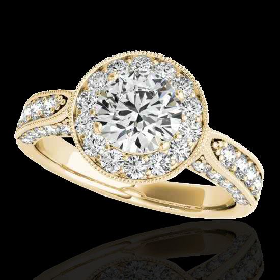 REF-253N6Y -34497 ---- 2 CTW H-SI/I Certified Diamond Solitaire Halo Ring 10K Yellow Gold ---- Luxury Designer Brand Ring Appraised at $15,350 Certificate Number US34497 10k Yellow gold, Ring Size is 7, Ring measuring approx. Uniform, weighing in total approx. 5.6 grams. Made in the USA and is stamped 10k, Main stone 1 carat total weight containing 1 pieces of H-I color with SI/I quality Round shape cut Diamond , Stone #2 1 carat total weight containing 46 pieces of H-I color with VS/SI quality Round shape cut Diamond