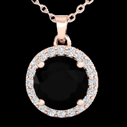 2 CTW Halo VS/SI Diamond Micro Pave Necklace Solitaire 14K Rose Gold ---- Luxury Designer Brand Necklace Appraised Retail Price at $3,900 ---- SKU Number US21551 14k Rose gold Necklace Size is 16 Inches, Necklace measuring approx. 10 mm round, weighing in total approx. 2.5 grams. Made in the USA and is stamped 14k, Main stone 1.75 carat total weight containing 1 pieces of Black Opaque color with VS quality Round shape cut Diamond , Stone #2 0.25 carat total weight containing 20 pieces of H-I color with VS/SI quality Round shape cut