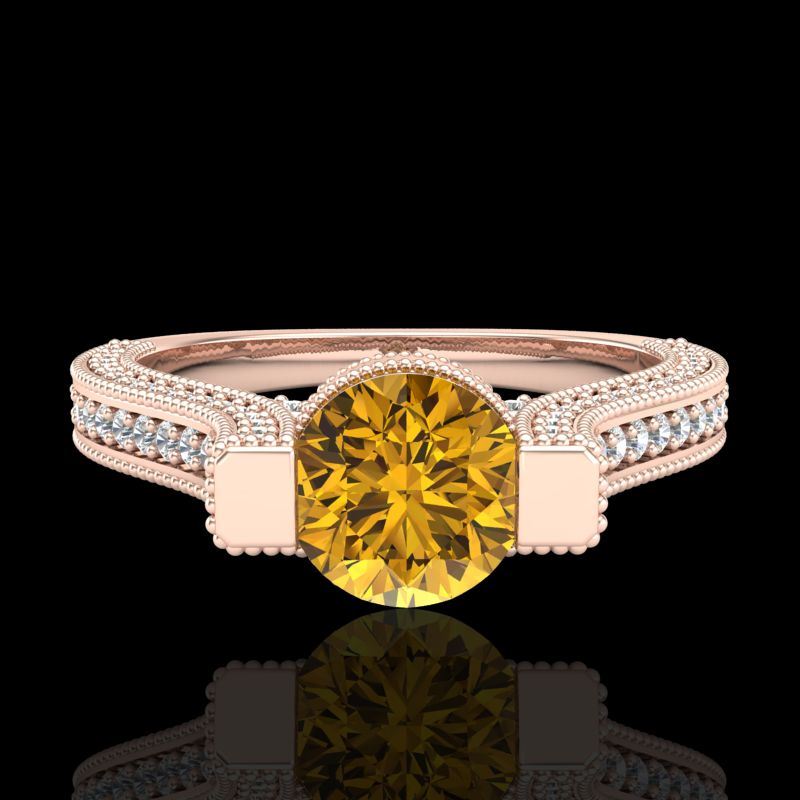 2 CTW Intense Fancy Yellow Diamond Engagement Micro Pave Ring 18K Rose Gold ---- Luxury Designer Brand Ring Appraised Retail Price at $13,200 ---- SKU Number US37624 18k Rose gold Ring Size is 7, Ring measuring approx. Uniform, weighing in total approx. 8.5 grams. Made in the USA and is stamped 18k, Main stone 0.75 carat total weight containing 1 pieces of Intense Fancy Yellow color with SI quality Round shape cut Diamond , Stone #2 1.25 carat total weight containing 117 pieces of H-I color with VS/SI quality Round shape cut