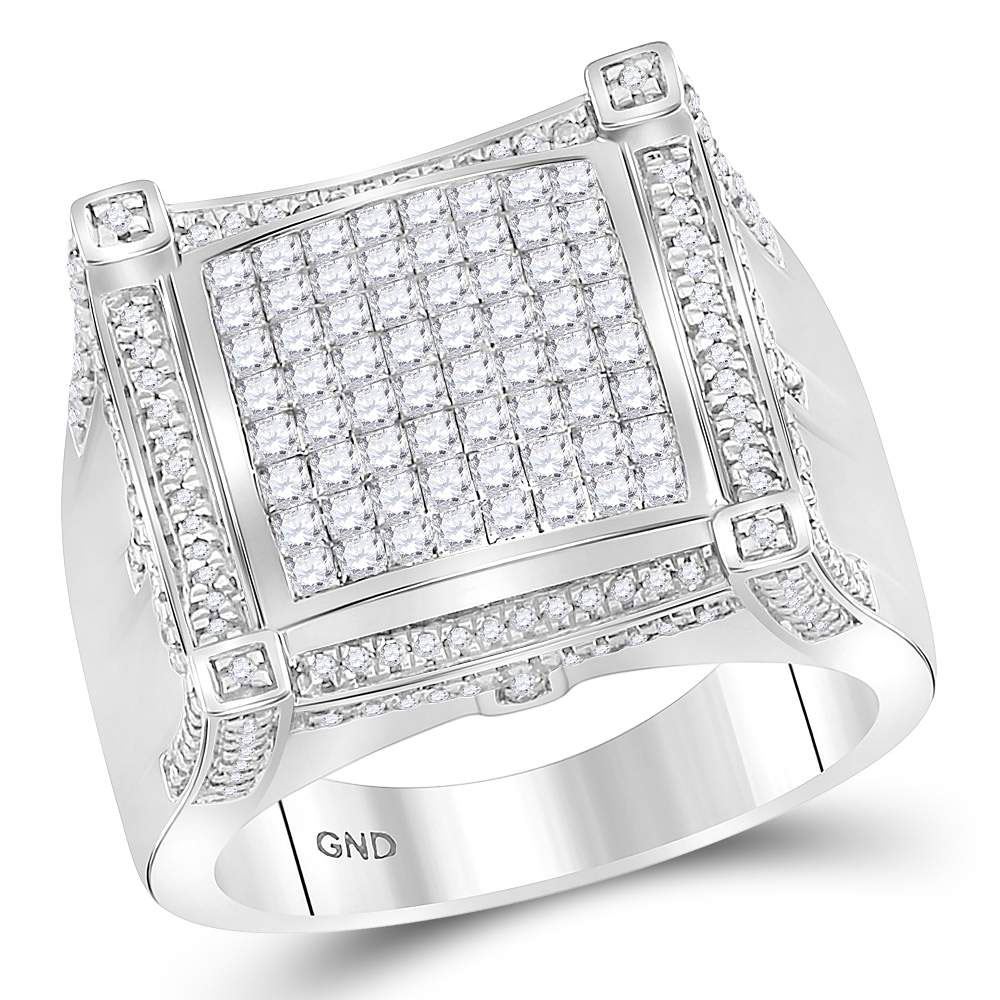 10kt White Gold Mens Princess Diamond Symmetrical Square Cluster Ring 1-7/8 Cttw