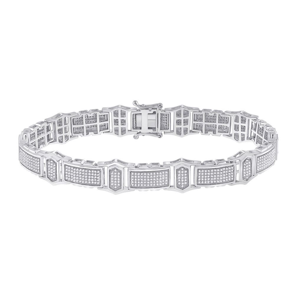 REF-184H3R - 2 CTW Mens Round Diamond Link Bracelet 10kt White Gold - REF-184H3R