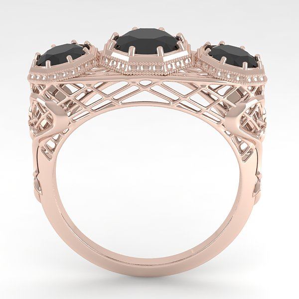 REF-90Y4K -36074 ---- 2 CTW Past Present Future Black Diamond Ring 18K Rose Gold ---- Luxury Designer Brand Ring Appraised at $5,450 Certificate Number US36074 18k Rose gold, Ring Size is 7, Ring measuring approx. Uniform, weighing in total approx. 6 grams. Made in the USA and is stamped 18k, Main stone 1 carat total weight containing 1 pieces of Black Opaque color with VS quality Round shape cut Diamond , Stone #2 1 carat total weight containing 2 pieces of H-I color with VS/SI quality Round shape cut Diamond