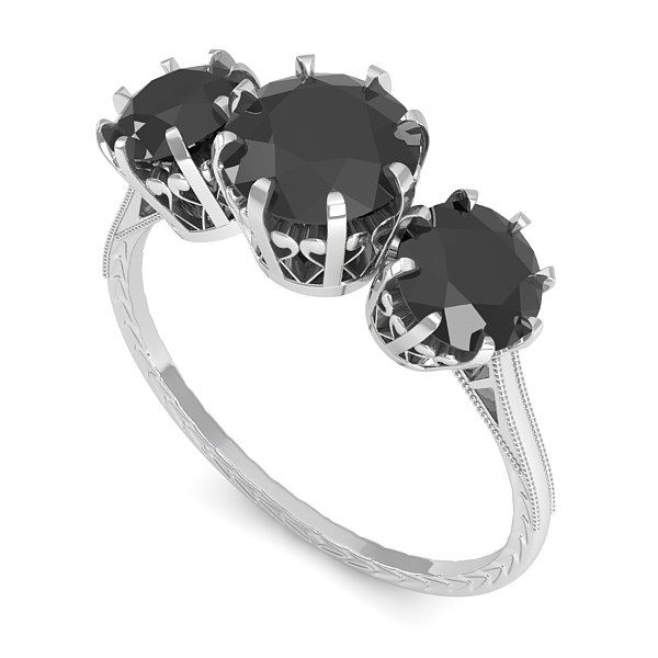 35778 - REF-100Y2X ---- 2 CTW Past Present Future Black Diamond Ring 18K White Gold ---- Luxury Designer Brand Ring Appraised at $6,600 Certificate Number US35778 18k White gold, Ring Size is 7, Ring measuring approx. Uniform, weighing in total approx. 7.6 grams. Made in the USA and is stamped 18k, Main stone 1 carat total weight containing 1 pieces of Black Opaque color with VS quality Round shape cut Diamond , Stone #2 1 carat total weight containing 2 pieces of H-I color with VS/SI quality Round shape cut Diamond