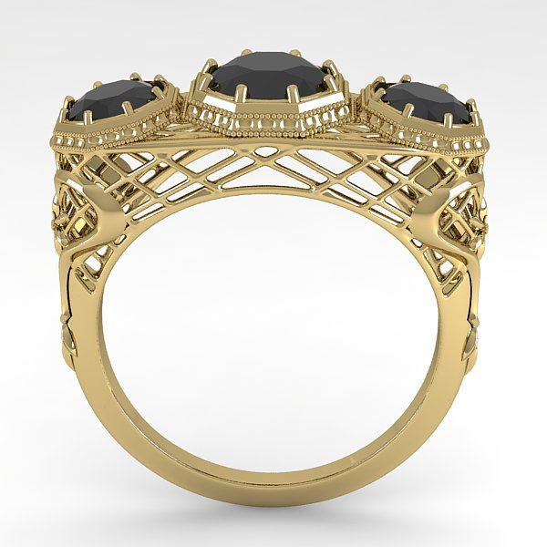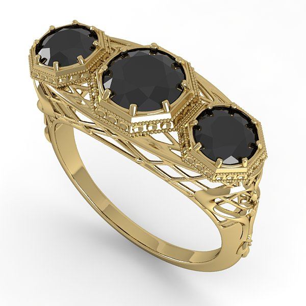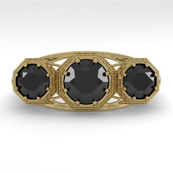 36076 - REF-90X4R ---- 2 CTW Past Present Future Black Diamond Ring 18K Yellow Gold ---- Luxury Designer Brand Ring Appraised at $5,450 Certificate Number US36076 18k Yellow gold, Ring Size is 7, Ring measuring approx. Uniform, weighing in total approx. 6 grams. Made in the USA and is stamped 18k, Main stone 1 carat total weight containing 1 pieces of Black Opaque color with VS quality Round shape cut Diamond , Stone #2 1 carat total weight containing 2 pieces of H-I color with VS/SI quality Round shape cut Diamond