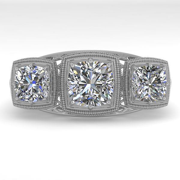 36072 - REF-481M6F ---- 2 CTW Past Present Future VS/SI Cushion Cut Diamond Ring Deco 18K White Gold ---- Luxury Designer Brand Ring Appraised at $25,700 Certificate Number US36072 18k White gold, Ring Size is 7, Ring measuring approx. Uniform, weighing in total approx. 6 grams. Made in the USA and is stamped 18k, Main stone 1 carat total weight containing 1 pieces of H-J color with VS/SI quality Cushion shape cut Diamond , Stone #2 1 carat total weight containing 2 pieces of H-I color with VS/SI quality Cushion shape cut Diamond