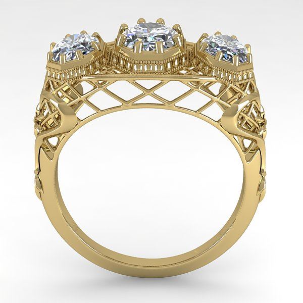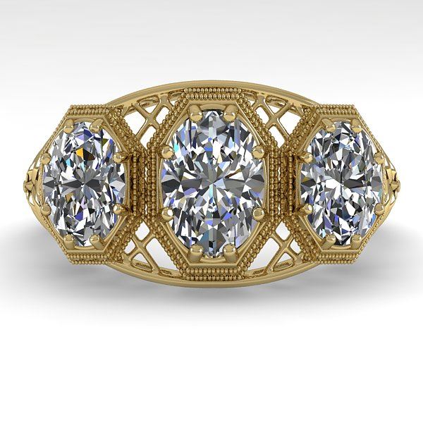 REF-421K6W -36067 ---- 2 CTW Past Present Future VS/SI Oval Cut Diamond Ring 18K Yellow Gold ---- Luxury Designer Brand Ring Appraised at $22,500 Certificate Number US36067 18k Yellow gold, Ring Size is 7, Ring measuring approx. Uniform, weighing in total approx. 6 grams. Made in the USA and is stamped 18k, Main stone 1 carat total weight containing 1 pieces of H-J color with VS/SI quality Oval shape cut Diamond , Stone #2 1 carat total weight containing 2 pieces of H-I color with VS/SI quality Oval shape cut Diamond