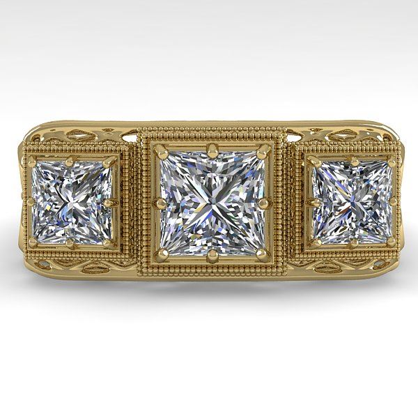REF-481H6A -36070 ---- 2 CTW Past Present Future VS/SI Princess Diamond Ring 18K Yellow Gold ---- Luxury Designer Brand Ring Appraised at $28,900 Certificate Number US36070 18k Yellow gold, Ring Size is 7, Ring measuring approx. Uniform, weighing in total approx. 6 grams. Made in the USA and is stamped 18k, Main stone 1 carat total weight containing 1 pieces of H-J color with VS/SI quality Princess shape cut Diamond , Stone #2 1 carat total weight containing 2 pieces of H-I color with VS/SI quality Princess shape cut Diamond