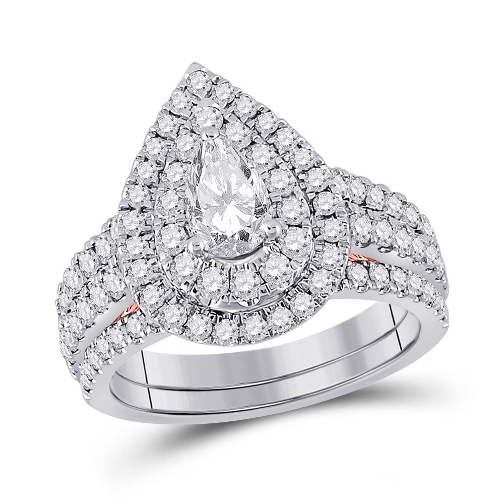 14kt Two-tone Gold Womens Pear Diamond Bridal Wedding Engagement Ring Band Set 2.00 Cttw (Certified)