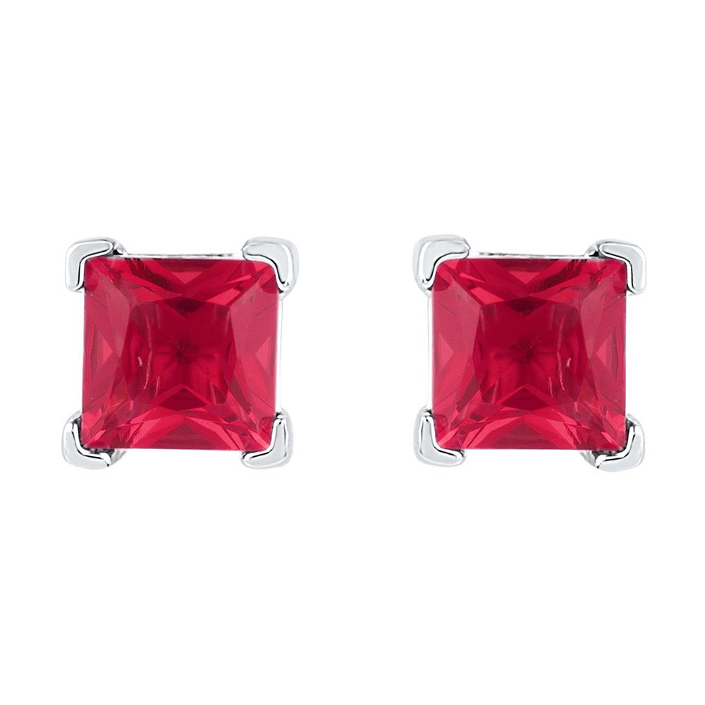 REF-13M4H- SKU: GD106756 ---- 2 CTW Princess Created Ruby Solitaire Earrings 10KT White Gold
