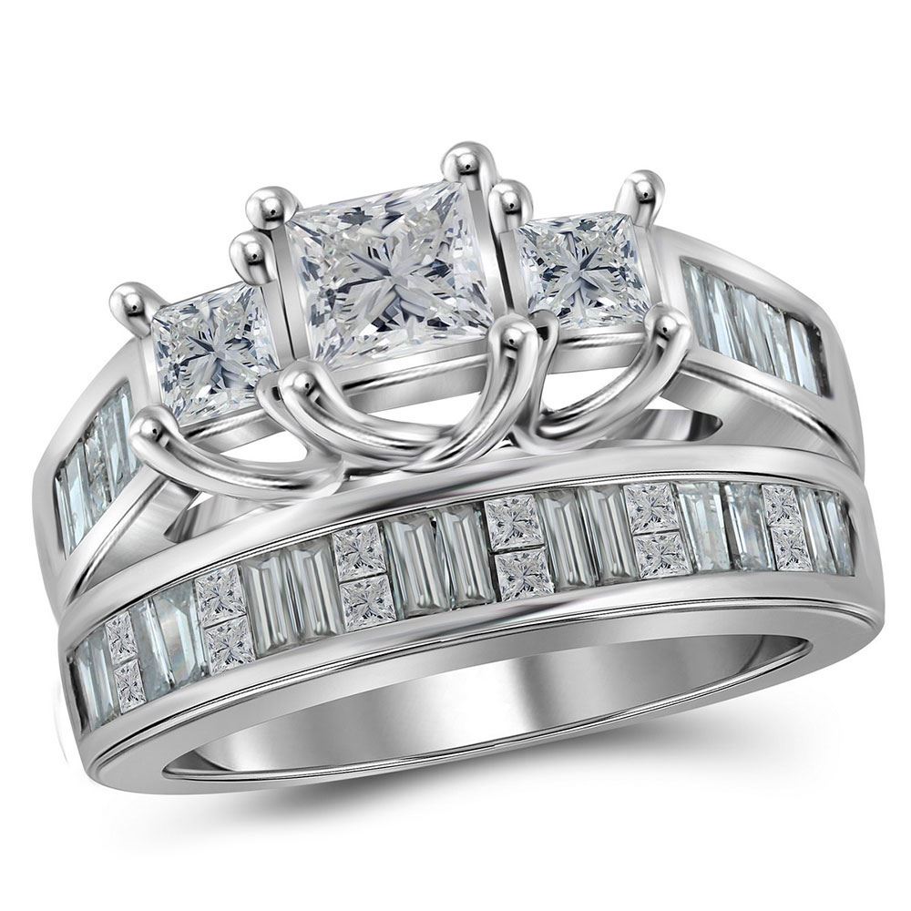 table {border-collapse: collapse; width: 100%; font-size: 1.2em; border: 1px lightgrey solid;} th, td {text-align: left; padding: 5px;} tr:nth-child(odd) {background-color: #ddeffd;} tr {border-bottom: 1px lightgrey solid;} Metal Type14kt White Gold Item Number29687 Style3-stoneRing Size7Carats Total Weight *2 Ct.t.w.Primary Gem TypeDiamondPrimary Gem ShapePrincessPrimary Gem Color / ClarityG-H / SI3Gem 2 TypeDiamondGem 2 ShapePrincessGem 2 Color / ClarityG-H / I1-I2Gem 3 TypeDiamondGem 3 ShapeBaguetteGem 3 Color / ClarityG-H / I1-I2Gram Weight9.11 grams (approximately)