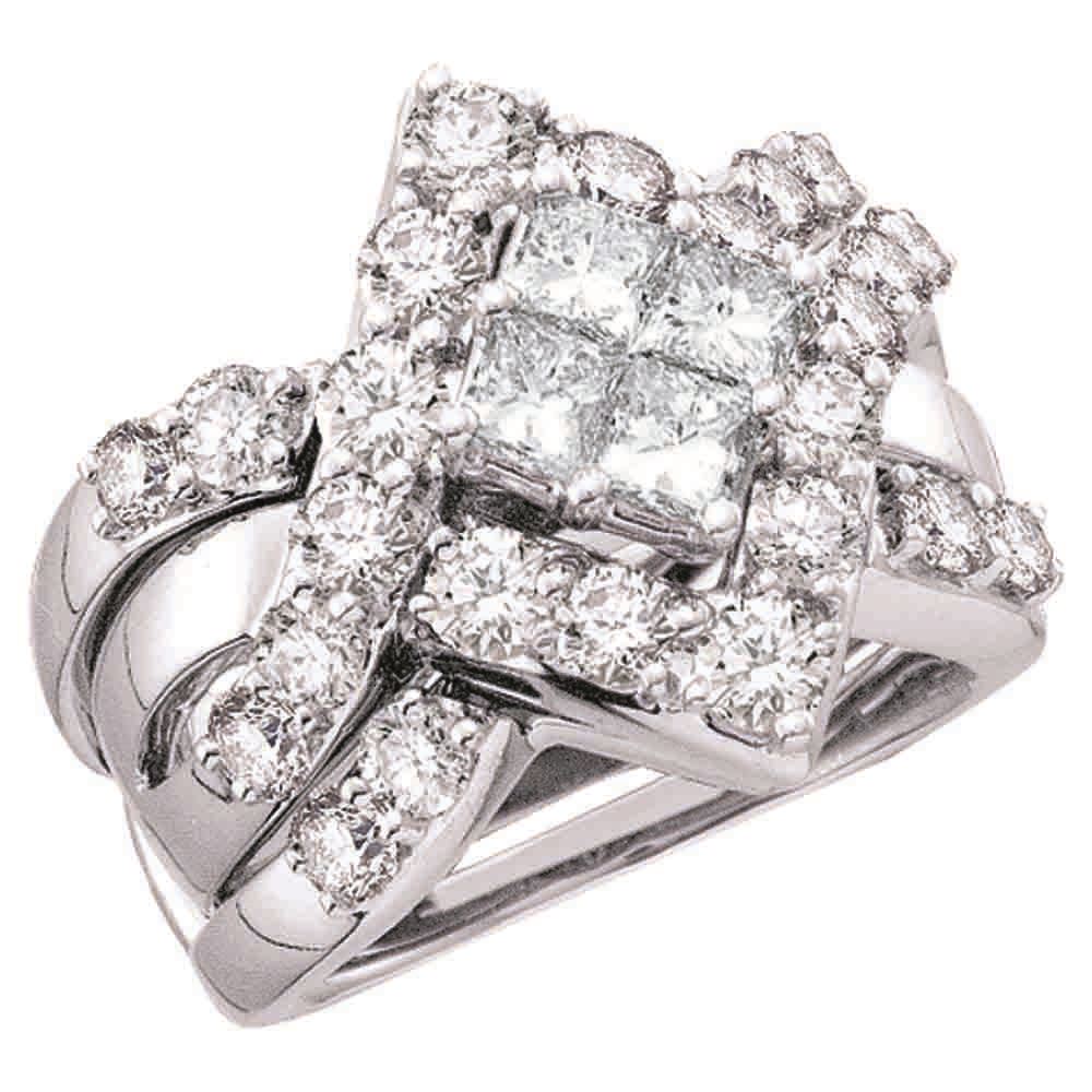 REF-254N9F- SKU: GD45456 ---- 2 CTW Princess Diamond Cluster Bridal Engagement Ring 14KT White Gold
