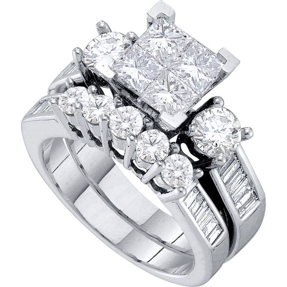 14kt White Gold Womens Princess Diamond Cluster Bridal Wedding Engagement Ring Band Set 2.00 Cttw