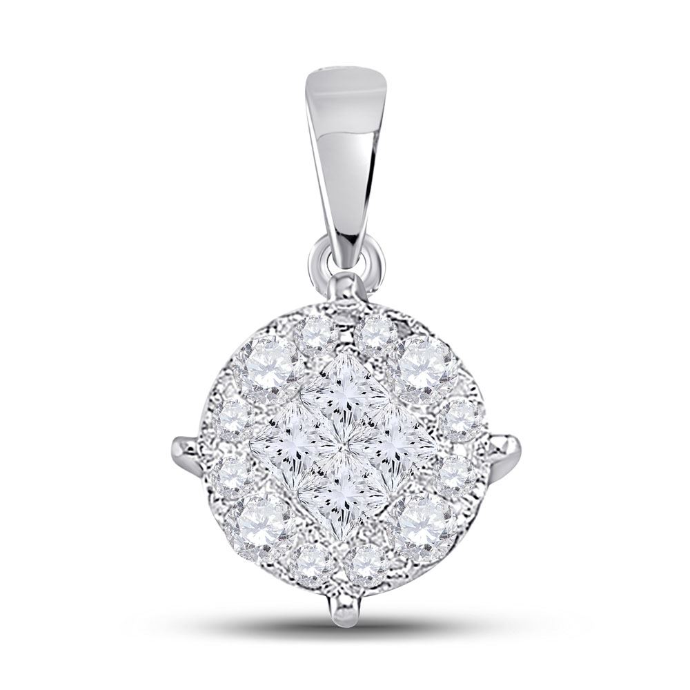 14kt White Gold Womens Princess Diamond Fashion Cluster Pendant 2.00 Cttw