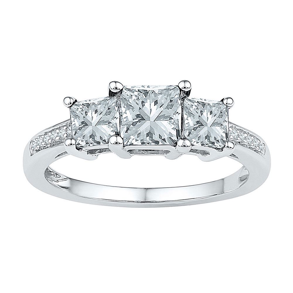 10kt White Gold Womens Princess Lab-Created White Sapphire 3-stone Ring 2.00 Cttw
