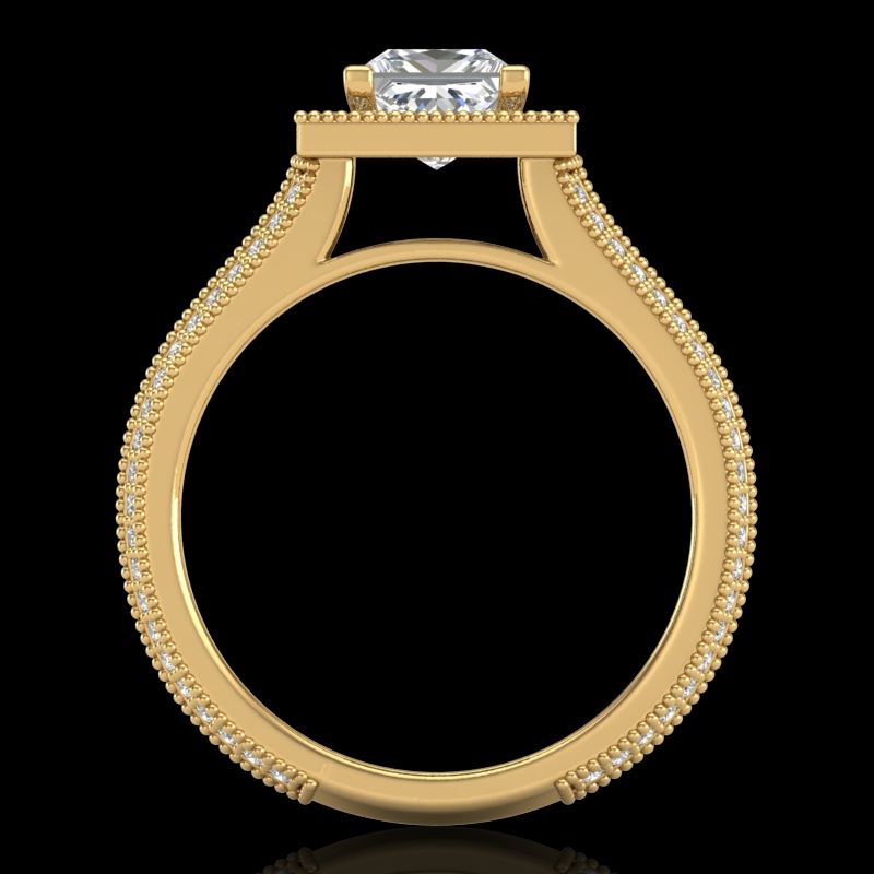 2 CTW Princess VS/SI Diamond Solitaire Micro Pave Ring 18K Yellow Gold ---- Luxury Designer Brand Ring Appraised Retail Price at $23,400 ---- SKU Number US37183 18k Yellow gold Ring Size is 7, Ring measuring approx. Uniform, weighing in total approx. 10 grams. Made in the USA and is stamped 18k, Main stone 1.03 carat total weight containing 1 pieces of H-J color with VS/SI quality Princess shape cut Diamond , Stone #2 0.97 carat total weight containing 116 pieces of H-I color with VS/SI quality Round shape cut