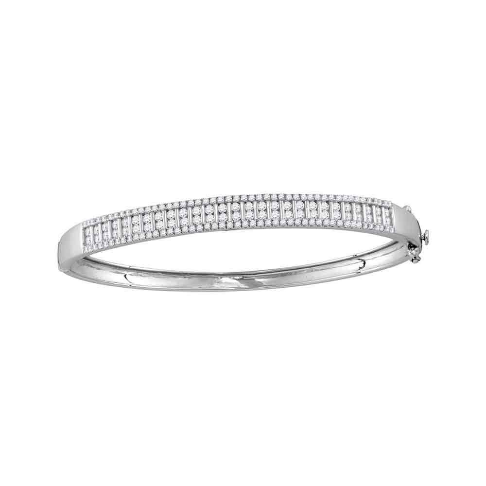 14kt White Gold Womens Round Diamond Bangle Bracelet 2.00 Cttw