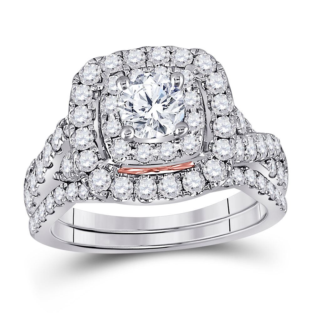 14kt Two-tone Gold Womens Round Diamond Bridal Wedding Engagement Ring Band Set 2.00 Cttw (Certified)