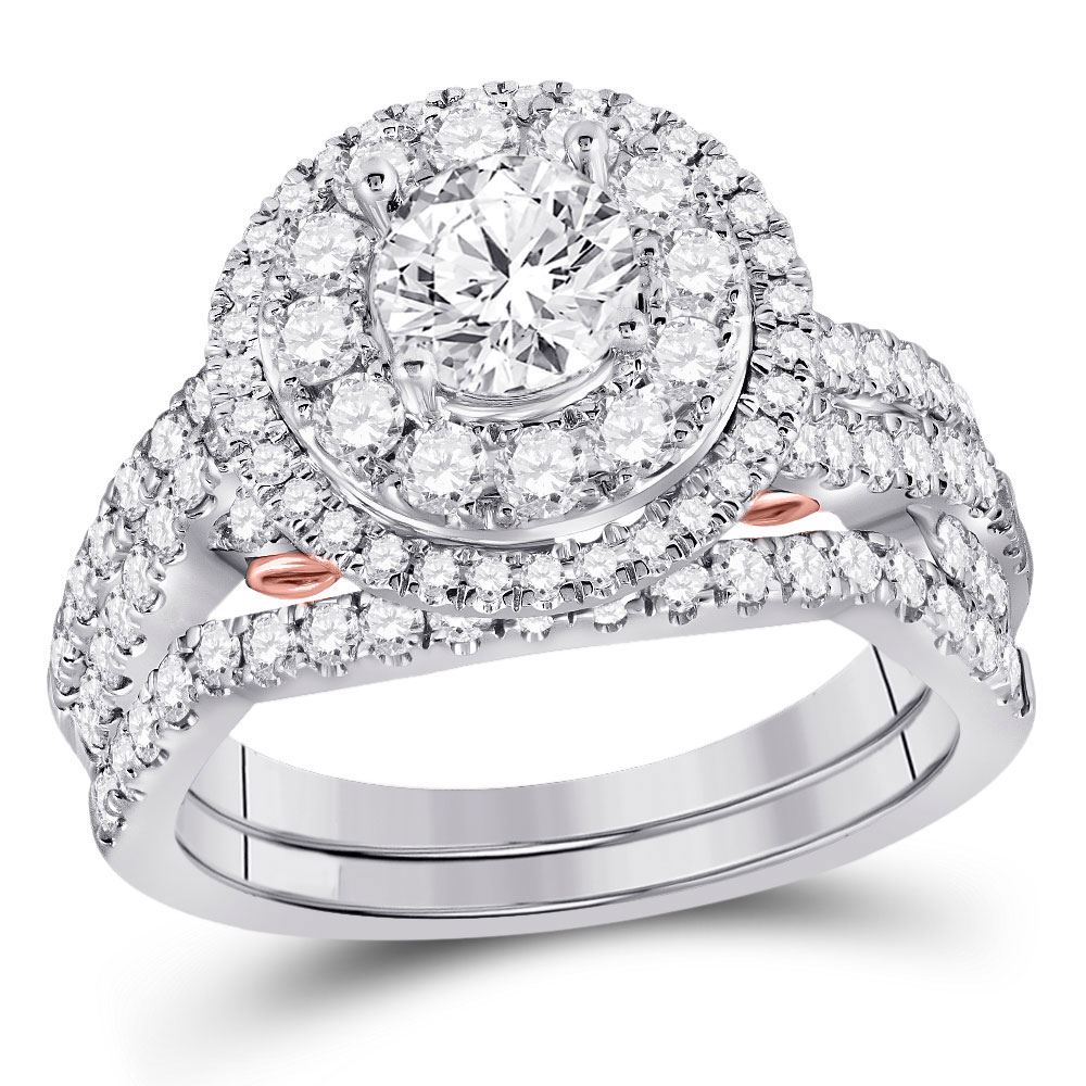 14kt Two-tone Gold Womens Round Diamond Bridal Wedding Engagement Ring Band Set 2.00 (Certified)