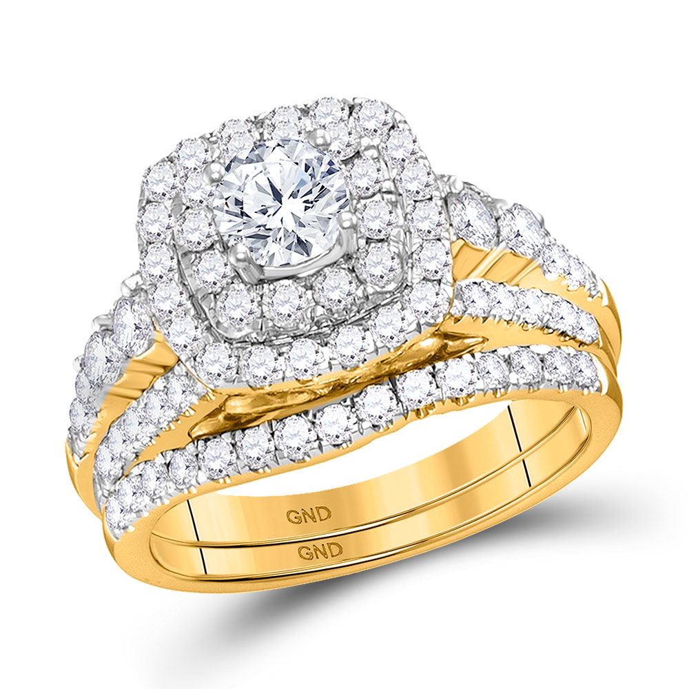 REF-295H8R - 2 CTW Round Diamond Bridal Wedding Ring 14kt Yellow Gold - REF-295H8R