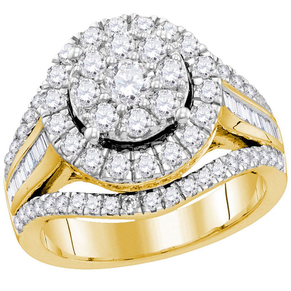 REF-167Y9X ---- 2 CTW Round Diamond Cluster Bridal Wedding Engagement Ring 10kt Yellow Gold