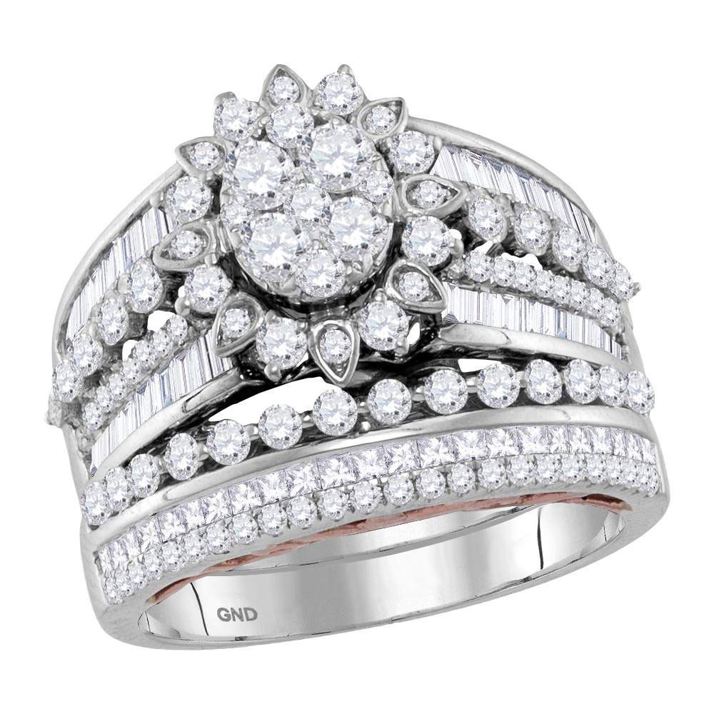 14kt Two-tone White Rose Gold Womens Round Diamond Bridal Wedding Engagement Ring Band Set 2.00 Cttw