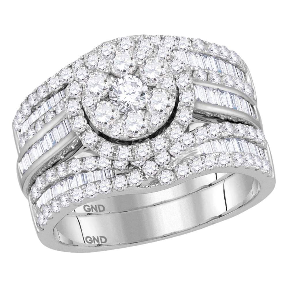 14kt White Gold Womens Round Diamond Cluster Bridal Wedding Engagement Ring Band 3-Piece Set 2.00 Cttw