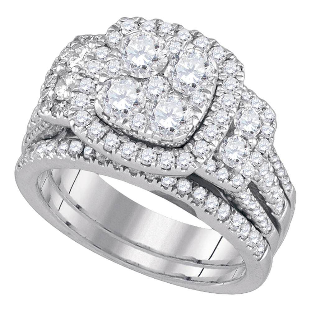 14kt White Gold Womens Round Diamond Cluster Bridal Wedding Engagement Ring Band Set 2.00 Cttw