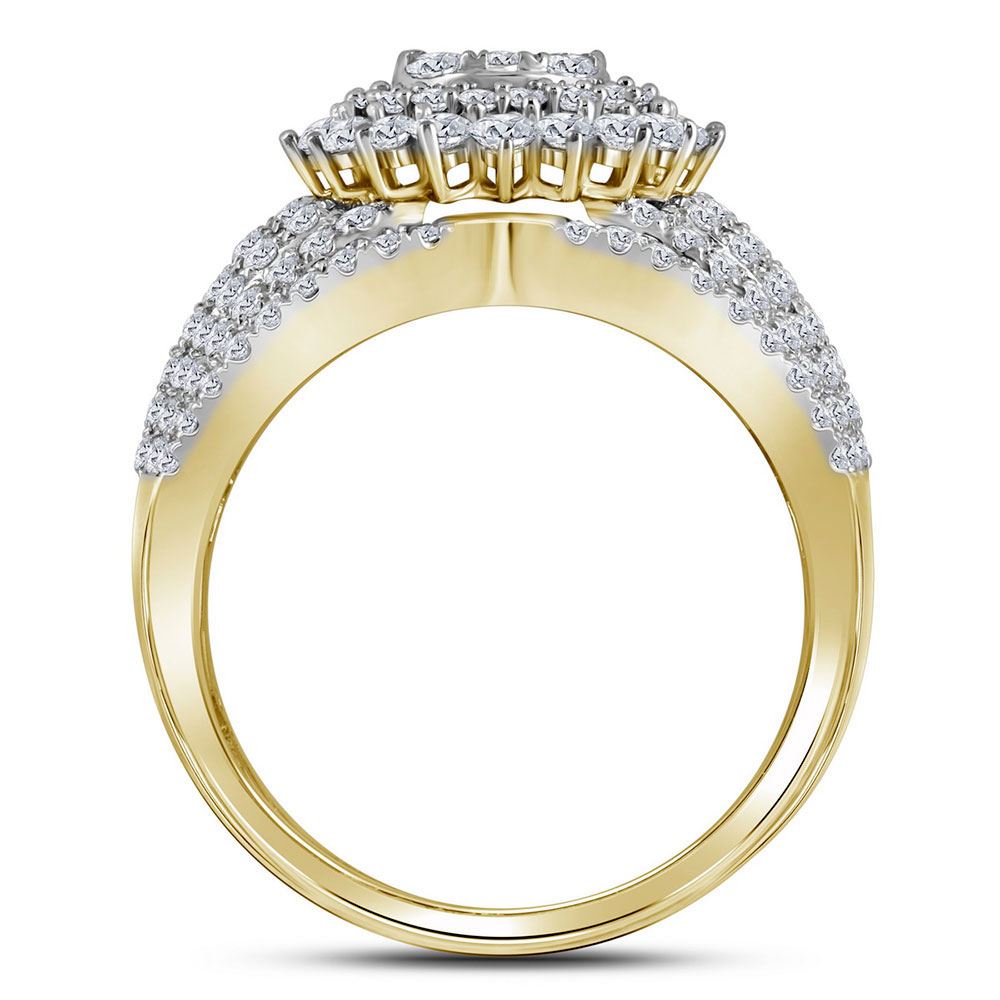 14kt Yellow Gold Womens Round Diamond Cluster Bridal Wedding Engagement Ring Band Set 2.00 Cttw