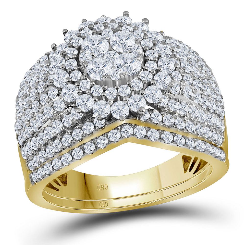 14kt Yellow Gold Womens Round Diamond Cluster Bridal Wedding Engagement Ring Band Set 2.00 Cttw