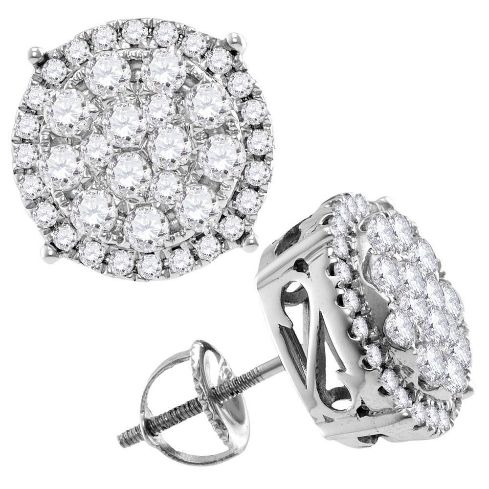 14kt White Gold Womens Round Diamond Concentric Circle Cluster Stud Earrings 2.00 Cttw