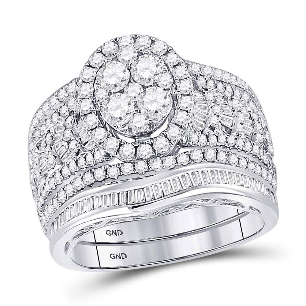 14kt White Gold Womens Round Diamond Oval Bridal Wedding Engagement Ring Band Set 2.00 Cttw