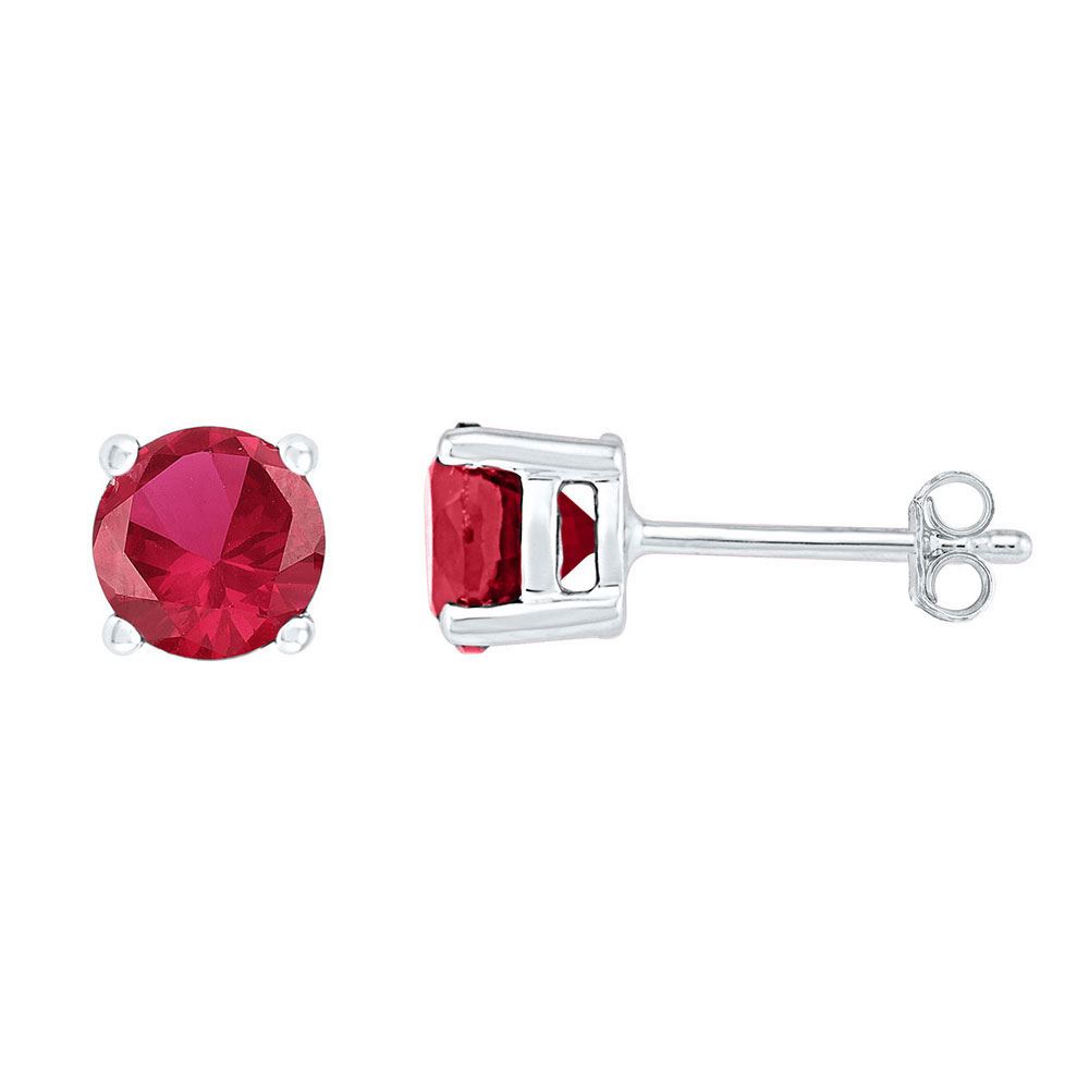 10kt White Gold Womens Round Lab-Created Ruby Stud Earrings 2.00 Cttw