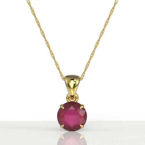 REF-24N9Y -22039 ---- 2 CTW Ruby Designer Inspired Solitaire Necklace 18K Yellow Gold ---- Luxury Designer Brand Necklace Appraised at $1,650 Certificate Number US22039 18k Yellow gold, Necklace Size is 16 Inches, Necklace measuring approx. 8 mm x 8 mm, weighing in total approx. 2.6 grams. Made in the USA and is stamped 18k, Main stone 2 carat total weight containing 1 pieces of Mid-Opaque-Deep Red color with AAA quality Round shape cut Ruby , Stone #2 carat total weight containing pieces of color with quality shape cut