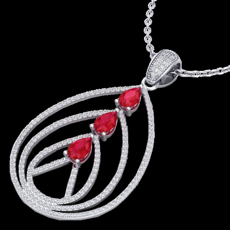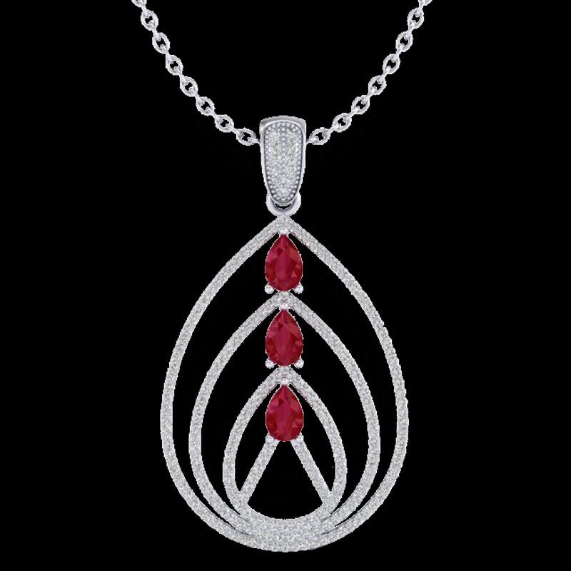 REF-133X3T -22469 ---- 2 CTW Ruby & Micro Pave VS/SI Diamond Designer Necklace 18K White Gold ---- Luxury Designer Brand Necklace Appraised at $10,250 Certificate Number US22469  18k White gold,  Necklace Size is 16 Inches, Necklace measuring approx. 1 1/2" X 1" , weighing in total approx. 8.5 grams. Made in the USA and is stamped 18k, Main stone 0.75 carat total weight containing 3 pieces of Mid-Opaque-Deep Red color with AAA quality Pear shape cut Ruby , Stone #2 1.25 carat total weight containing 180 pieces of H-I color with  VS/SI quality Round shape cut Diamond