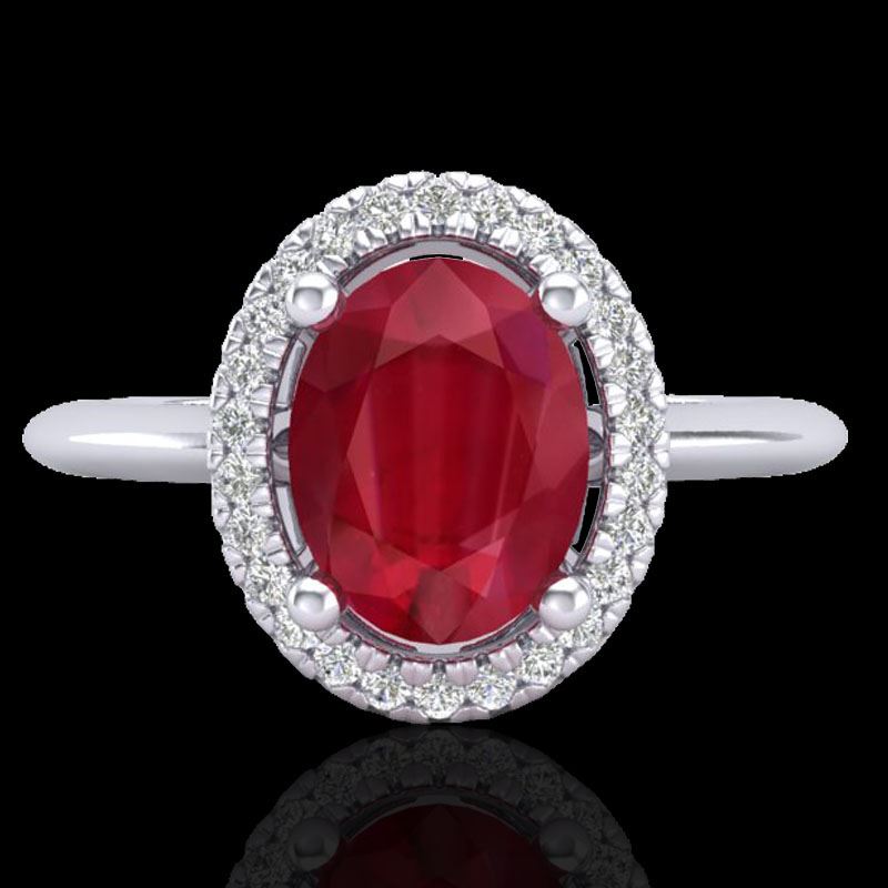 REF-56F9N -21018 ---- 2 CTW Ruby & Micro Pave VS/SI Diamond Ring Solitaire Halo 18K White Gold ---- Luxury Designer Brand Ring Appraised at $4,050 Certificate Number US21018 18k White gold, Ring Size is 7, Ring measuring approx. 1/2" X 1/2" , weighing in total approx. 3.5 grams. Made in the USA and is stamped 18k, Main stone 1.77 carat total weight containing 1 pieces of Mid-Opaque-Deep Red color with AAA quality Oval shape cut Ruby , Stone #2 0.23 carat total weight containing 27 pieces of H-I color with VS/SI quality Round shape cut Diamond