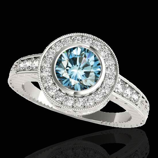 2 CTW SI Certified Blue Diamond Solitaire Halo Ring 10K White Gold ---- Luxury Designer Brand Ring Appraised Retail Price at $17,300 ---- SKU Number US33905 10k White gold Ring Size is 7, Ring measuring approx. Uniform, weighing in total approx. 5.7 grams. Made in the USA and is stamped 10k, Main stone 1.50 carat total weight containing 1 pieces of Intense Fancy Blue color with SI quality Round shape cut Diamond , Stone #2 0.5 carat total weight containing 25 pieces of H-I color with VS/SI quality Round shape cut
