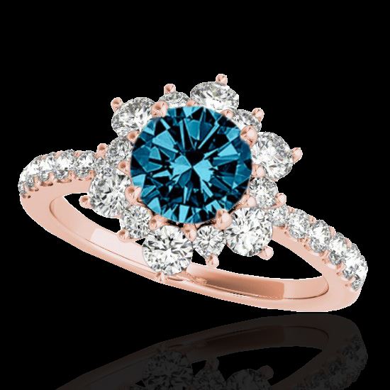REF-200X2T -33712 ---- 2 CTW Si Certified Blue Diamond Solitaire Halo Ring 10K Rose Gold ---- Luxury Designer Brand Ring Appraised at $12,100 Certificate Number US33712 10k Rose gold, Ring Size is 7, Ring measuring approx. Uniform, weighing in total approx. 3.5 grams. Made in the USA and is stamped 10k, Main stone 1 carat total weight containing 1 pieces of Intense Fancy Blue color with SI quality Round shape cut Diamond , Stone #2 1 carat total weight containing 24 pieces of H-I color with VS/SI quality Round shape cut Diamond