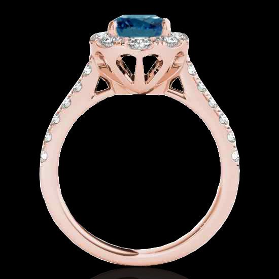 REF-210H9A -34084 ---- 2 CTW Si Certified Blue Diamond Solitaire Halo Ring 10K Rose Gold ---- Luxury Designer Brand Ring Appraised at $13,900 Certificate Number US34084 10k Rose gold, Ring Size is 7, Ring measuring approx. Uniform, weighing in total approx. 4.7 grams. Made in the USA and is stamped 10k, Main stone 1 carat total weight containing 1 pieces of Intense Fancy Blue color with SI quality Round shape cut Diamond , Stone #2 1 carat total weight containing 22 pieces of H-I color with VS/SI quality Round shape cut Diamond