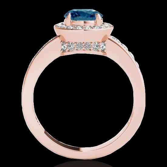 REF-300W2F -34357 ---- 2 CTW Si Certified Blue Diamond Solitaire Halo Ring 10K Rose Gold ---- Luxury Designer Brand Ring Appraised at $19,800 Certificate Number US34357 10k Rose gold, Ring Size is 7, Ring measuring approx. Uniform, weighing in total approx. 4.5 grams. Made in the USA and is stamped 10k, Main stone 1.5 carat total weight containing 1 pieces of Intense Fancy Blue color with SI quality Round shape cut Diamond , Stone #2 0.5 carat total weight containing 36 pieces of H-I color with VS/SI quality Round shape cut Diamond