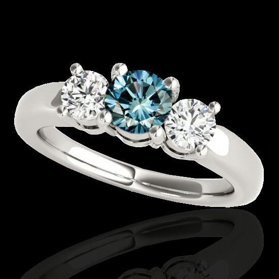 REF-290Y9K -35444 ---- 2 CTW Si Certified Fancy Blue Diamond 3 Stone Solitaire Ring 10K White Gold ---- Luxury Designer Brand Ring Appraised at $19,200 Certificate Number US35444  10k White gold,  Ring Size is 7, Ring measuring approx. Uniform, weighing in total approx. 3.6 grams. Made in the USA and is stamped 10k, Main stone 1 carat total weight containing 1 pieces of Intense Fancy Blue color with SI  quality Round shape cut Diamond , Stone #2 1 carat total weight containing 2 pieces of H-I color with  VS/SI quality Round shape cut Diamond