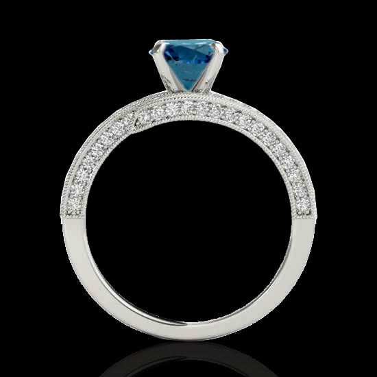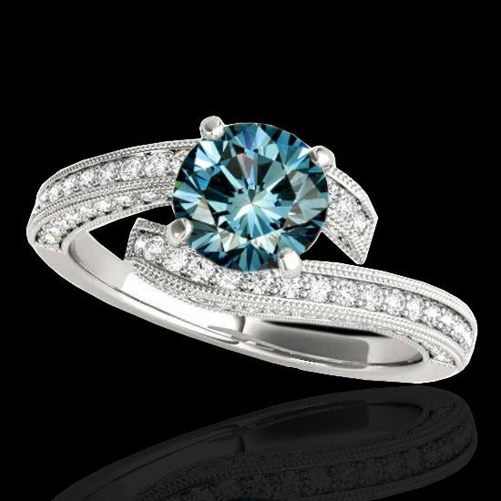 REF-227H3A -35135 ---- 2 CTW Si Certified Fancy Blue Diamond Bypass Solitaire Ring 10K White Gold ---- Luxury Designer Brand Ring Appraised at $15,000 Certificate Number US35135 10k White gold, Ring Size is 7, Ring measuring approx. Uniform, weighing in total approx. 4.4 grams. Made in the USA and is stamped 10k, Main stone 1.25 carat total weight containing 1 pieces of Intense Fancy Blue color with SI quality Round shape cut Diamond , Stone #2 0.75 carat total weight containing 94 pieces of H-I color with VS/SI quality Round shape cut Diamond