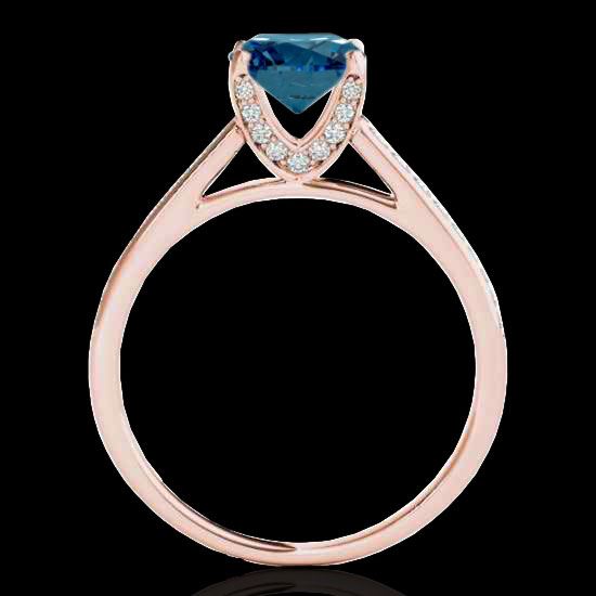 REF-281A8X -34859 ---- 2 CTW Si Certified Fancy Blue Diamond Solitaire Ring 10K Rose Gold ---- Luxury Designer Brand Ring Appraised at $18,600 Certificate Number US34859 10k Rose gold, Ring Size is 7, Ring measuring approx. Uniform, weighing in total approx. 3.6 grams. Made in the USA and is stamped 10k, Main stone 1.5 carat total weight containing 1 pieces of Intense Fancy Blue color with SI quality Round shape cut Diamond , Stone #2 0.5 carat total weight containing 32 pieces of H-I color with VS/SI quality Round shape cut Diamond