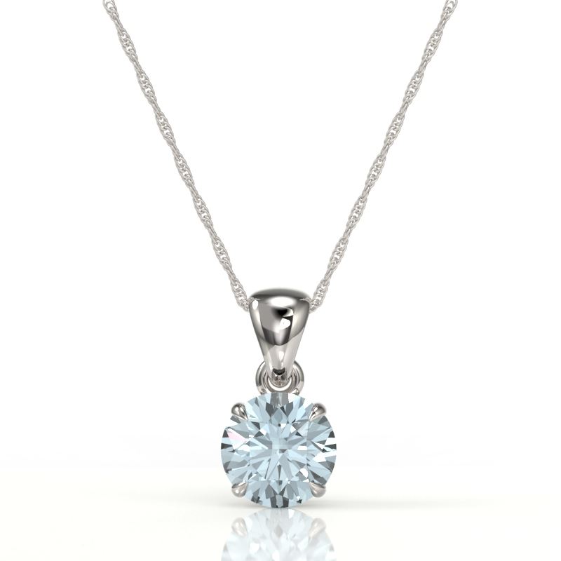 REF-24W9F -22046 ---- 2 CTW Sky Blue Topaz Designer Inspired Solitaire Necklace 18K White Gold ---- Luxury Designer Brand Necklace Appraised at $1,650 Certificate Number US22046 18k White gold, Necklace Size is 16 Inches, Necklace measuring approx. 8 mm x 8 mm, weighing in total approx. 2.6 grams. Made in the USA and is stamped 18k, Main stone 2 carat total weight containing 1 pieces of Translucent Sky Blue color with AAA quality Round shape cut Topaz , Stone #2 carat total weight containing pieces of color with quality shape cut