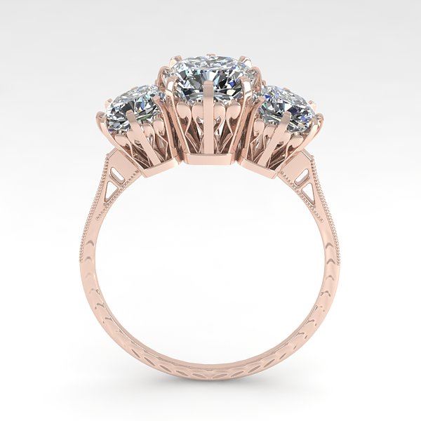 2 CTW Solitaire Past Present Future VS/SI Cushion Diamond Ring 18K Rose Gold ---- Luxury Designer Brand Ring Appraised Retail Price at $22,100 ---- SKU Number US35786 18k Rose gold Ring Size is 7, Ring measuring approx. Uniform, weighing in total approx. 7.6 grams. Made in the USA and is stamped 18k, Main stone 1.00 carat total weight containing 1 pieces of H-J color with VS/SI quality CUSHION shape cut Diamond , Stone #2 1 carat total weight containing 2 pieces of H-I color with VS/SI quality Cushion shape cut