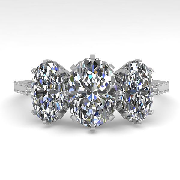 2 CTW Solitaire Past Present Future VS/SI Oval Cut Diamond Ring 18K White Gold ---- Luxury Designer Brand Ring Appraised Retail Price at $22,100 ---- SKU Number US35781 18k White gold Ring Size is 7, Ring measuring approx. Uniform, weighing in total approx. 7.6 grams. Made in the USA and is stamped 18k, Main stone 1.00 carat total weight containing 1 pieces of H-J color with VS/SI quality Oval shape cut Diamond , Stone #2 1 carat total weight containing 2 pieces of H-I color with VS/SI quality Oval shape cut