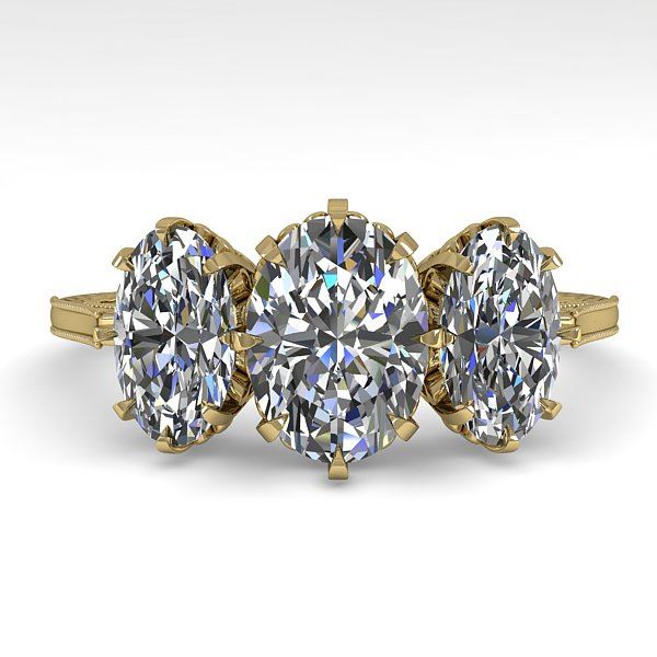 REF-414M2H -35782 ---- 2 CTW Solitaire Past Present Future VS/SI Oval Cut Diamond Ring 18K Yellow Gold ---- Luxury Designer Brand Ring Appraised at $22,100 Certificate Number US35782 18k Yellow gold, Ring Size is 7, Ring measuring approx. Uniform, weighing in total approx. 7.6 grams. Made in the USA and is stamped 18k, Main stone 1 carat total weight containing 1 pieces of H-J color with VS/SI quality Oval shape cut Diamond , Stone #2 1 carat total weight containing 2 pieces of H-I color with VS/SI quality Oval shape cut Diamond