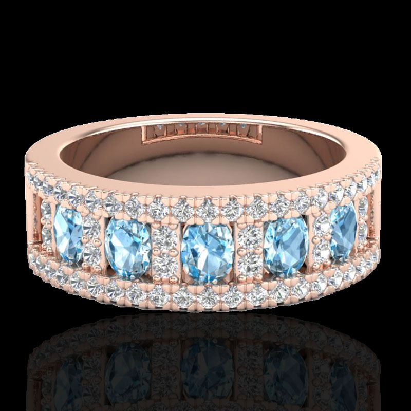 2 CTW Topaz & Micro Pave VS/SI Diamond Designer Inspired Band Ring 10K Rose Gold ---- Luxury Designer Brand Ring Appraised Retail Price at $4,300 ---- SKU Number US20818 10k Rose gold Ring Size is 7, Ring measuring approx. 3/8 " X1 ", weighing in total approx. 4.4 grams. Made in the USA and is stamped 10k, Main stone 1.36 carat total weight containing 5 pieces of Translucent Blue color with AAA quality Oval shape cut Topaz , Stone #2 0.64 carat total weight containing 50 pieces of H-I color with VS/SI quality Round shape cut