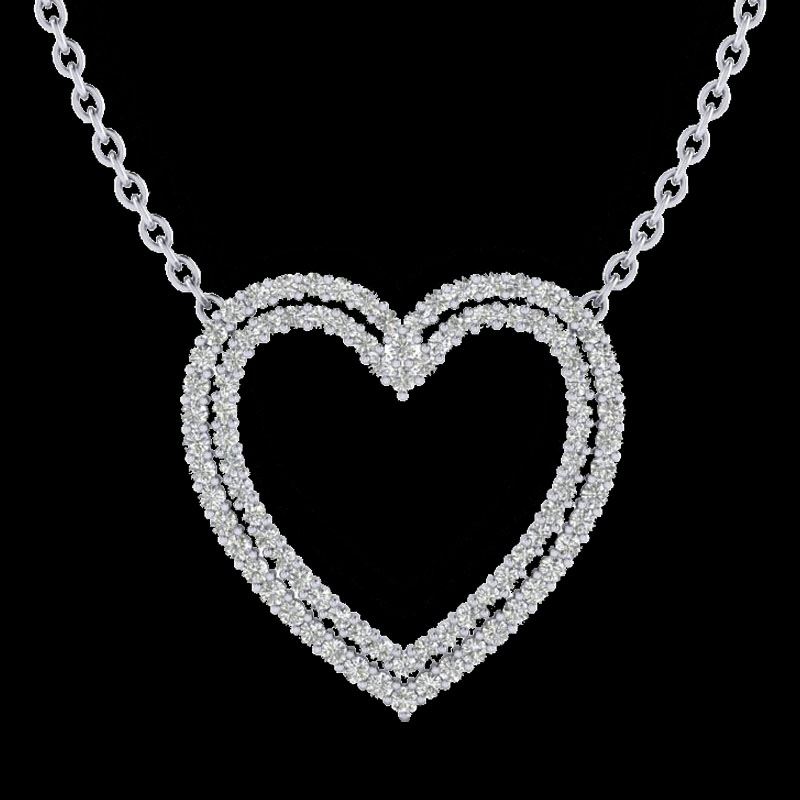 REF-134A8X -20481 ---- 2 CTW VS/SI Diamond Double Heart Halo Designer Necklace 14K White Gold ---- Luxury Designer Brand Necklace Appraised at $7,400 Certificate Number US20481 14k White gold, Necklace Size is 16 Inches, Necklace measuring approx. 1" x 1" , weighing in total approx. 6 grams. Made in the USA and is stamped 14k, Main stone 1 carat total weight containing 26 pieces of H-J color with VS/SI quality Round shape cut Diamond , Stone #2 1 carat total weight containing 34 pieces of H-I color with VS/SI quality Round shape cut Diamond
