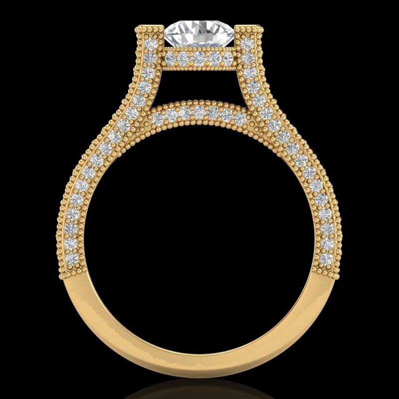 REF-290K9W -36949 ---- 2 CTW VS/SI Diamond Micro Pave Ring 18K Yellow Gold ---- Luxury Designer Brand Ring Appraised at $16,000 Certificate Number US36949 18k Yellow gold, Ring Size is 7, Ring measuring approx. Uniform, weighing in total approx. 4 grams. Made in the USA and is stamped 18k, Main stone 0.75 carat total weight containing 1 pieces of H-J color with VS/SI quality Round shape cut Diamond , Stone #2 1.25 carat total weight containing 117 pieces of H-I color with VS/SI quality Round shape cut Diamond